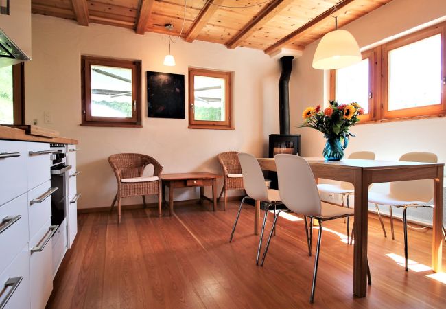 Ground floor apartment in a large chalet, for 2 people, benefiting from a magnificent location on the heights of the village of Villaz, in the municipality of Evolène. 5 minutes walk from the centre. Direct car access in summer, in winter car access 50 metres away (private parking space).