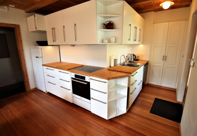 Description: Entrance hall, living area with kitchen, dining area and lounge area, wood-burning stove, exit to private garden/terrace, 1 bedroom with double bed, large bathroom, cellar/ski storage.